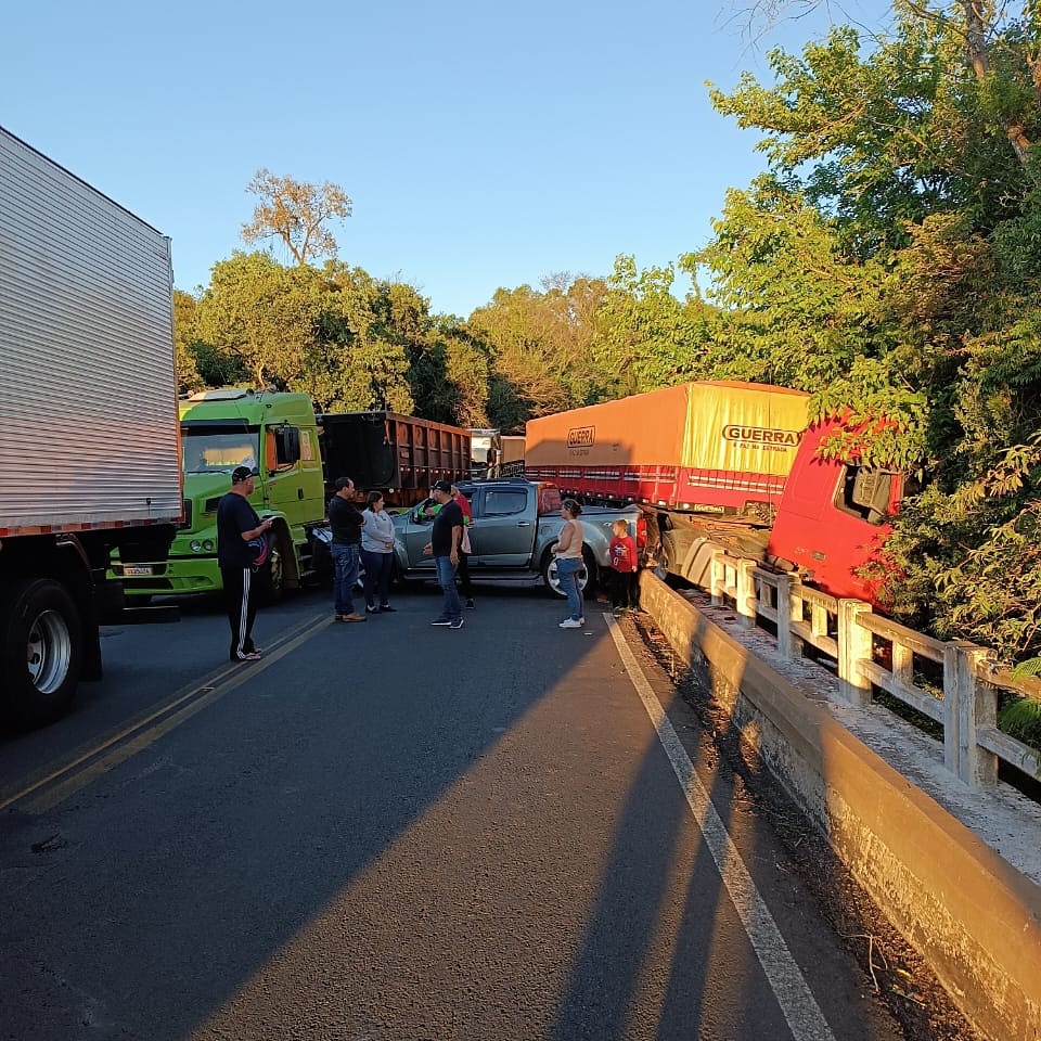 Um acidente envolvendo três veículos bloqueou totalmente a BR-386 na tarde desta segunda-feira (22), no trecho que liga Iraí a Frederico Westphalen. A colisão ocorreu sobre a ponte do Rio da Várzea, e a Polícia Rodoviária Federal (PRF) atende a ocorrência.