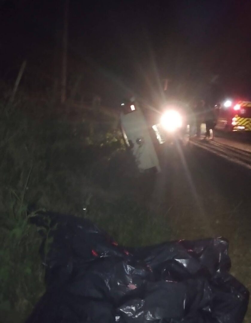 Segundo o Corpo de Bombeiros, o veículo saiu da pista e capotou. O condutor foi arremessado para fora do carro e encontrado caído de bruços, já sem sinais vitais.