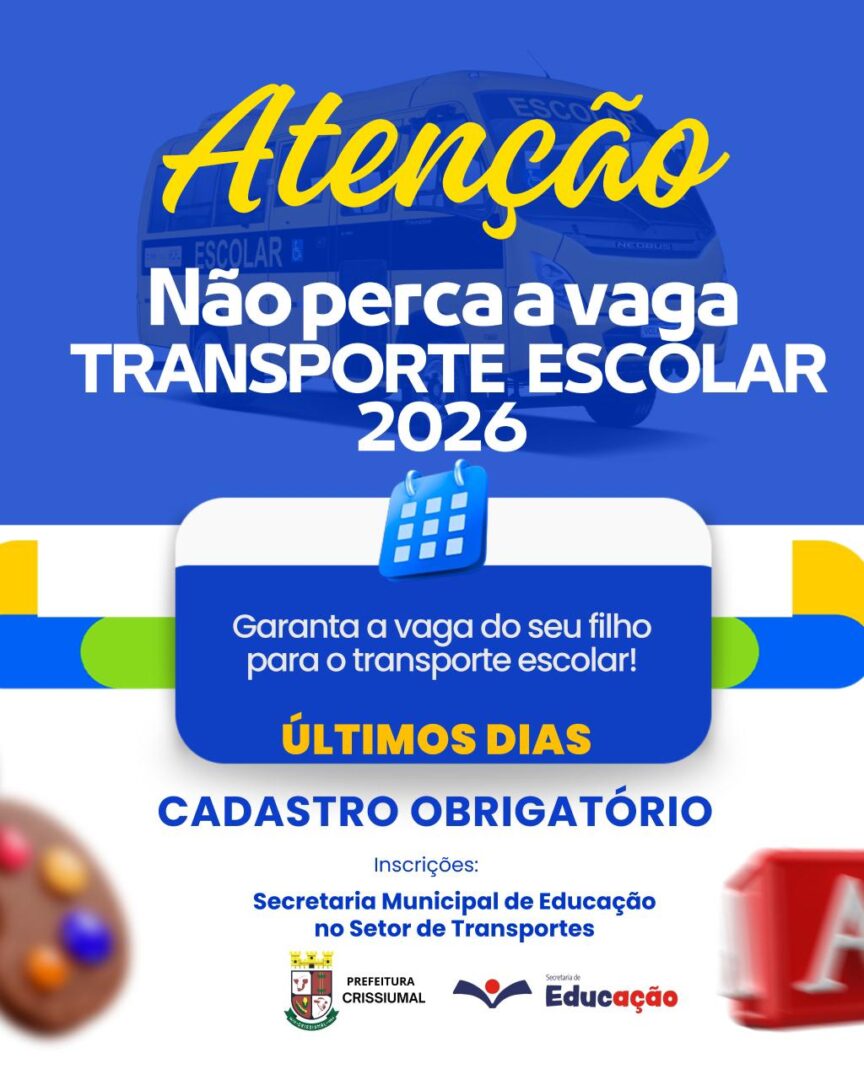 🚍📚 Atenção, pais e responsáveis! Não perca a vaga do Transporte Escolar 2026. Garanta o transporte do seu filho e evite...