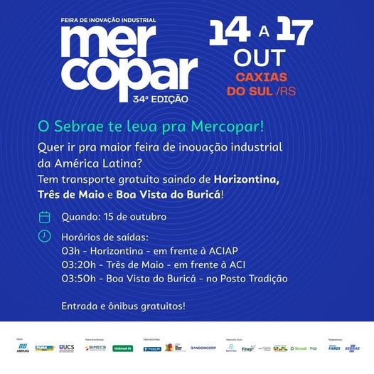 BOA VISTA DO BURICÁ – O SEBRAE convida todos os interessados em participarem da Mercopar 2025 – maior feira de Inovação Industrial da América Latina