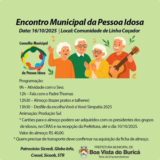 O momento é de celebração, alegria e valorização da melhor idade! Nesta quinta-feira, dia 16 de outubro, acontece o Encontro Municipal...