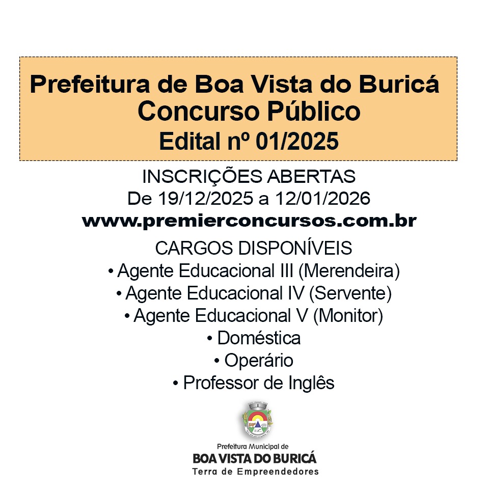 A Prefeitura de Boa Vista do Buricá está com inscrições abertas para o Concurso Público