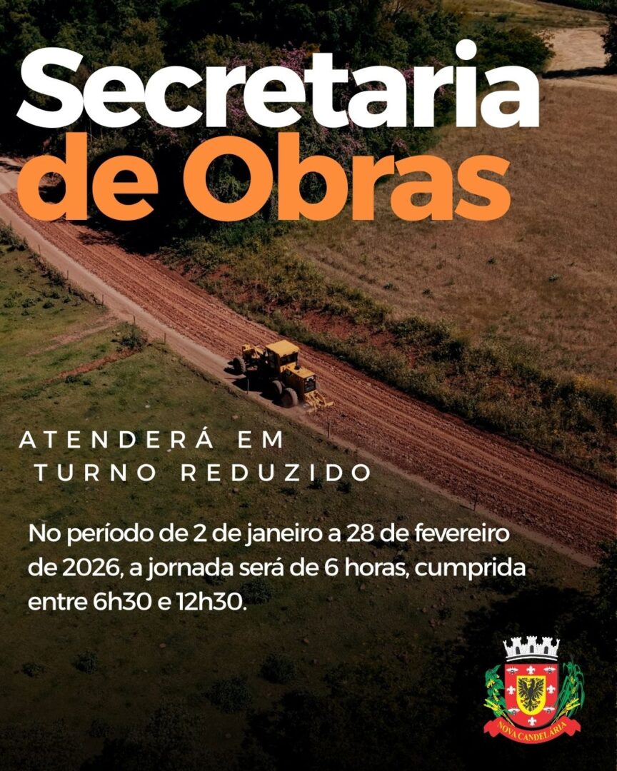 Prefeitura de Nova Candelária institui turno reduzido na Secretaria de Obras e Viação durante o verão