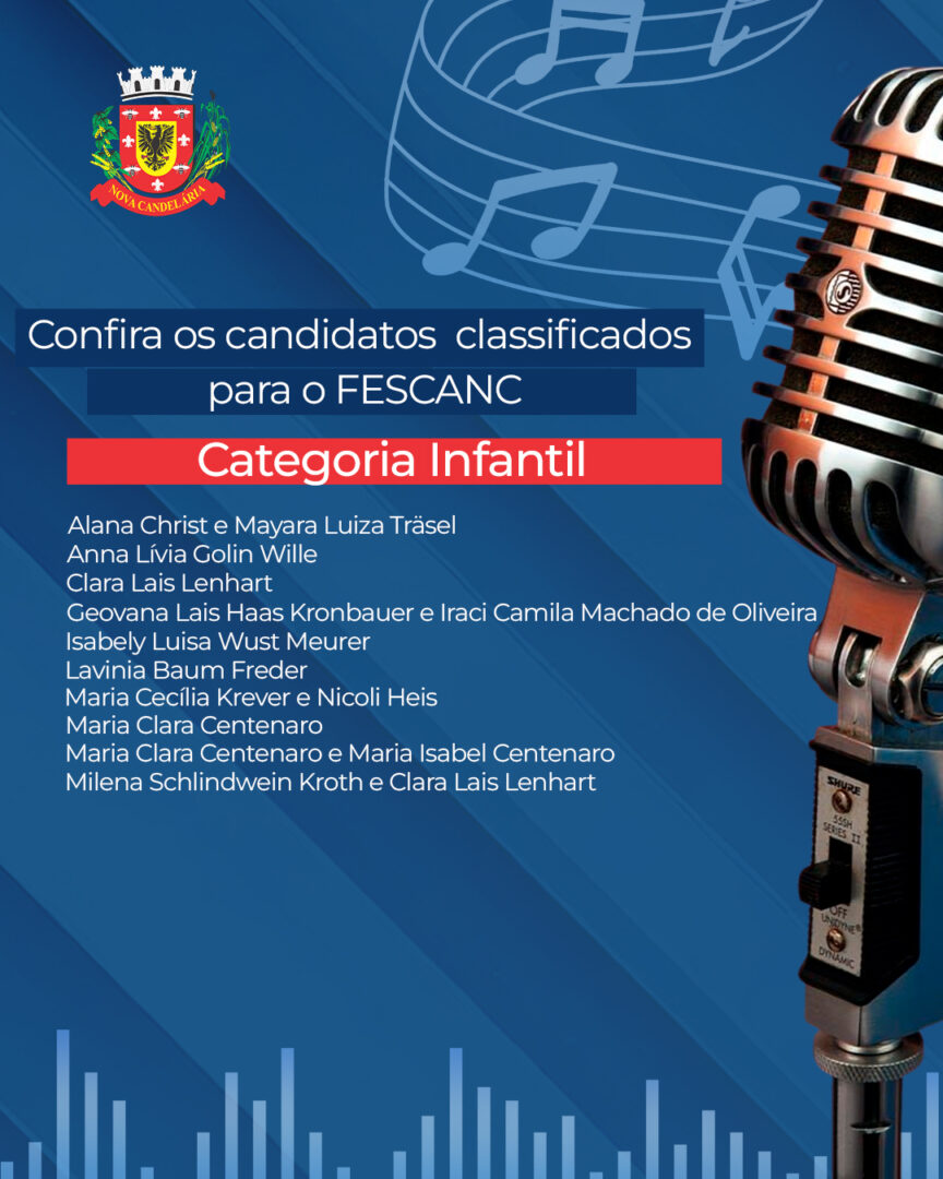Nova Candelária – FESCANC 2025 divulga lista de classificados para o Festival Estudantil da Canção