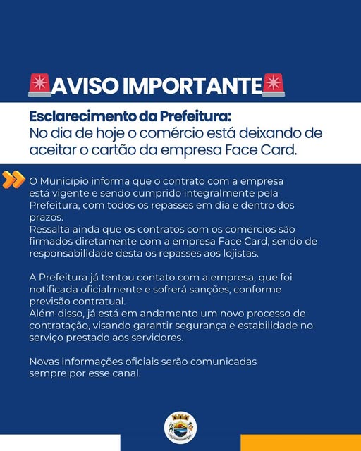 Prefeitura de São José do Inhacorá esclarece situação sobre uso do cartão Face Card