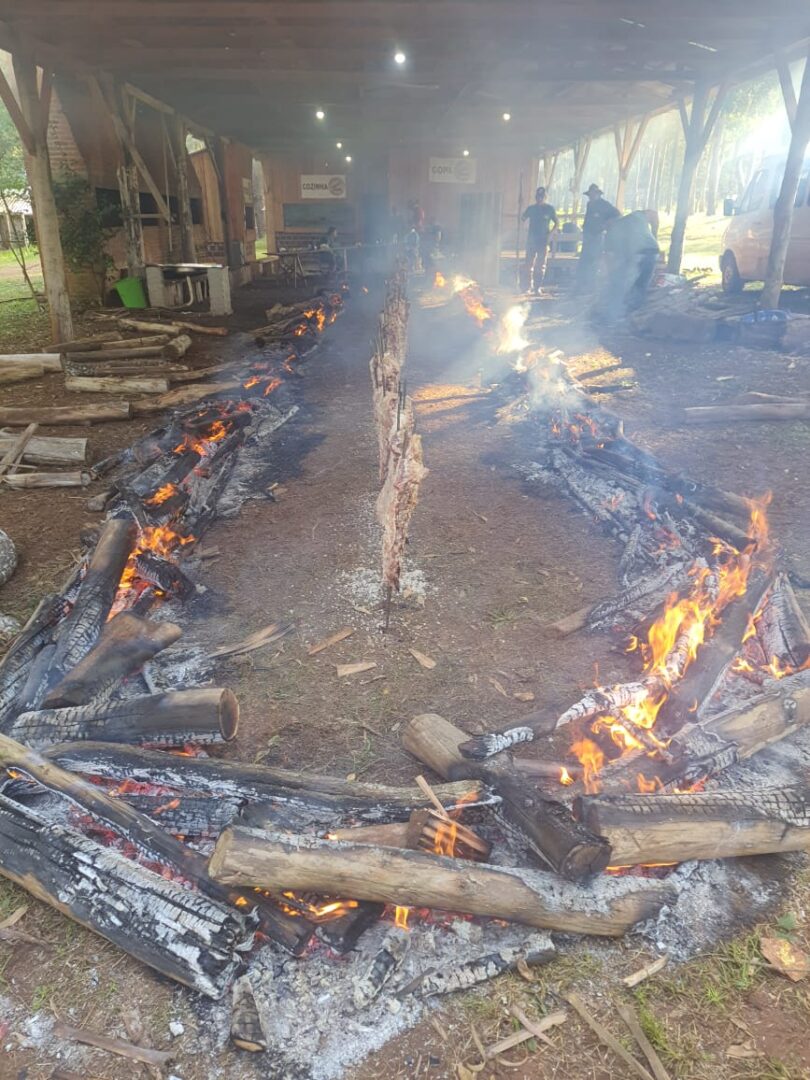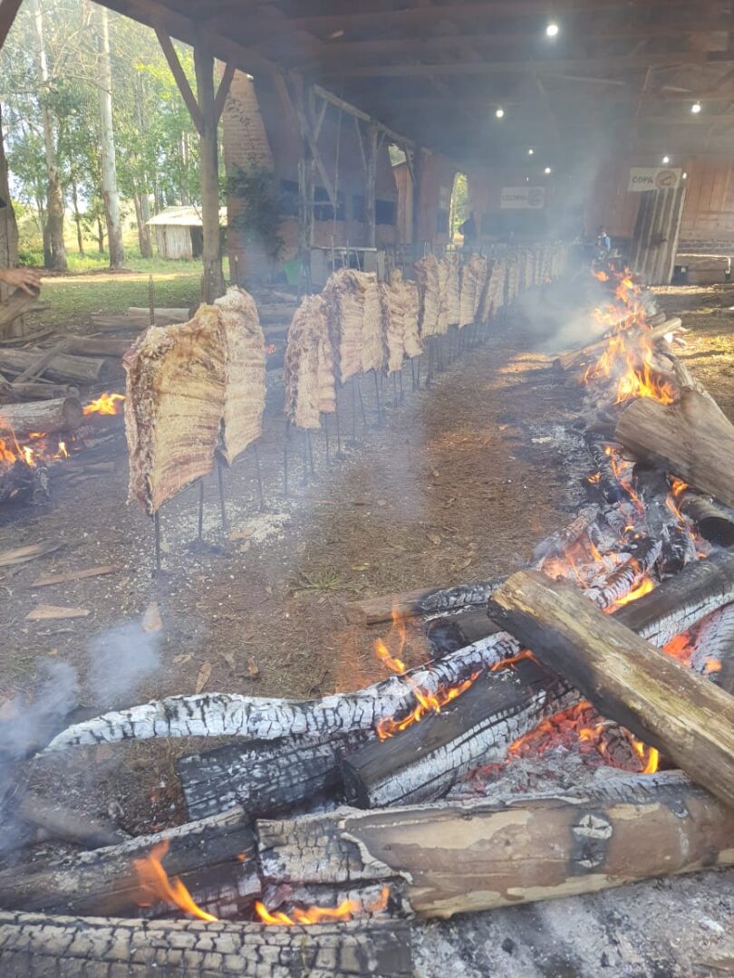 A manhã começou com a celebração da missa no CTG, reunindo famílias em um momento de fé e espiritualidade. Já ao meio-dia, foi servido o tradicional costelão assado no fogo de chão, acompanhado por saladas e um completo buffet de sobremesas, que fez sucesso entre os presentes e destacou a qualidade da gastronomia típica oferecida pelo centro tradicionalista.