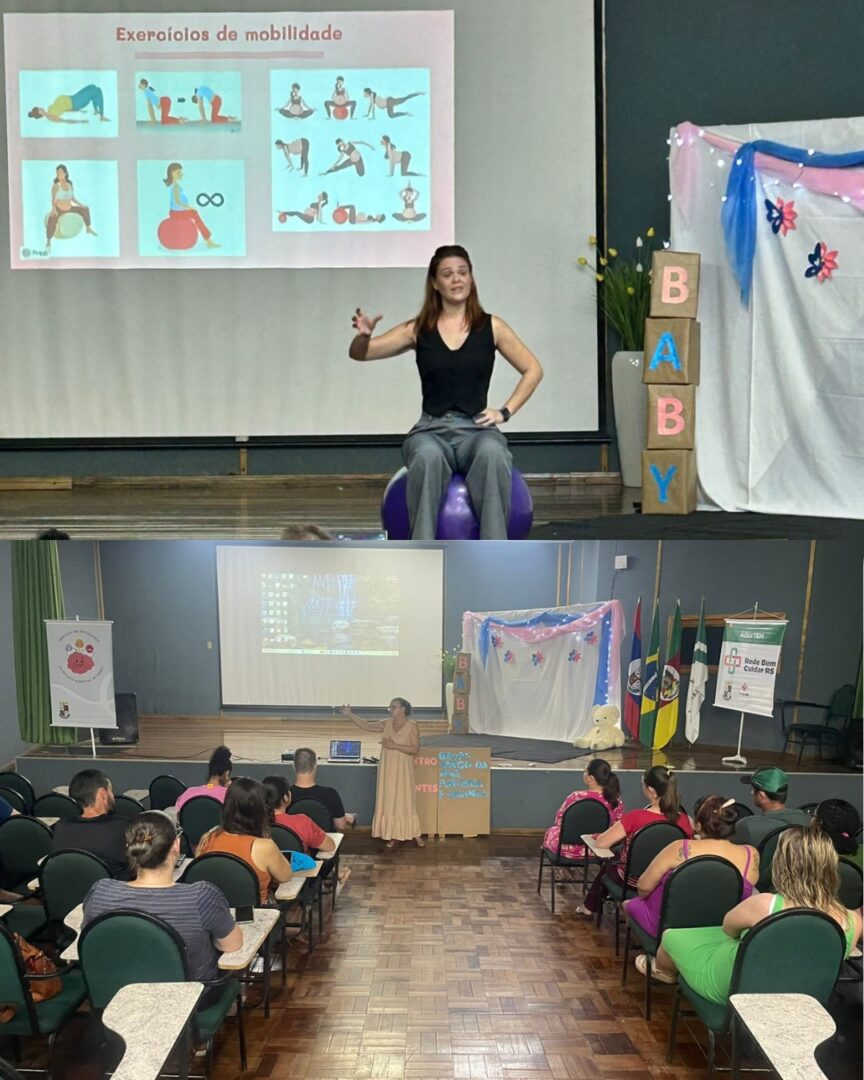 O Encontro contou com a participação da Dra. Rosa, falando sobre a importância do pré-natal, e também da fisioterapeuta Monique Lippert, trazendo orientações valiosas sobre os cuidados com o corpo no período gestacional e pós-parto.