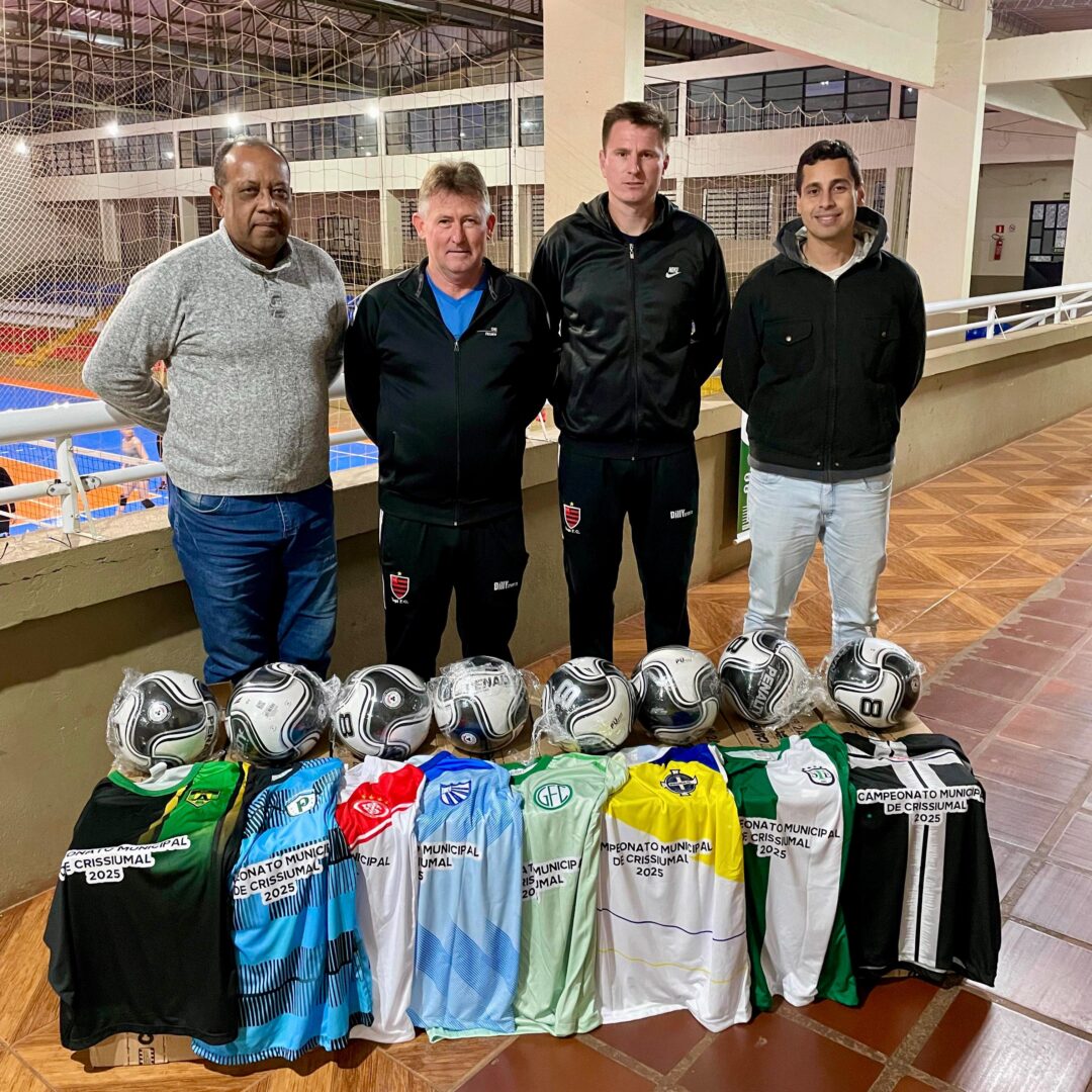 Nesta segunda-feira, 22 de setembro, a Administração Municipal, em parceria com o CMD, realizou a entrega de uniformes e bolas novas aos clubes participantes do Campeonato Municipal de Crissiumal: Amizade, Cruzeiro, Guarany, Internacional, Ipiranga, Palmeirinhas, Tiradentes e Vasco da Gama.
