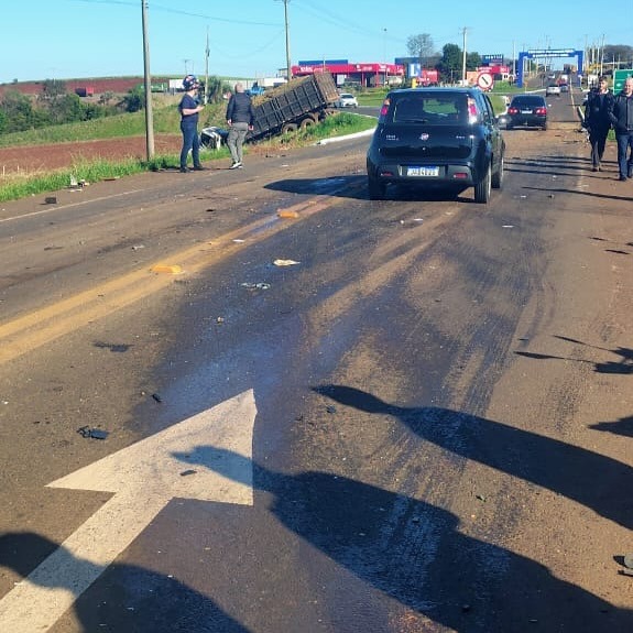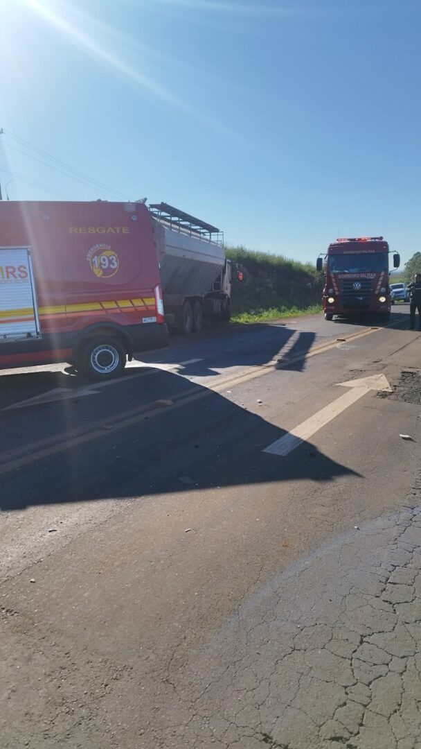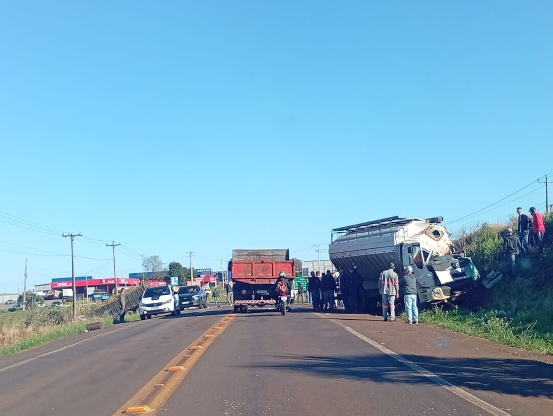Santo Cristo – Um acidente de trânsito envolvendo dois caminhões foi registrado na manhã desta quinta-feira (28/08), por volta das 9h, na BR-472, próximo ao trevo de acesso a Santo Cristo.