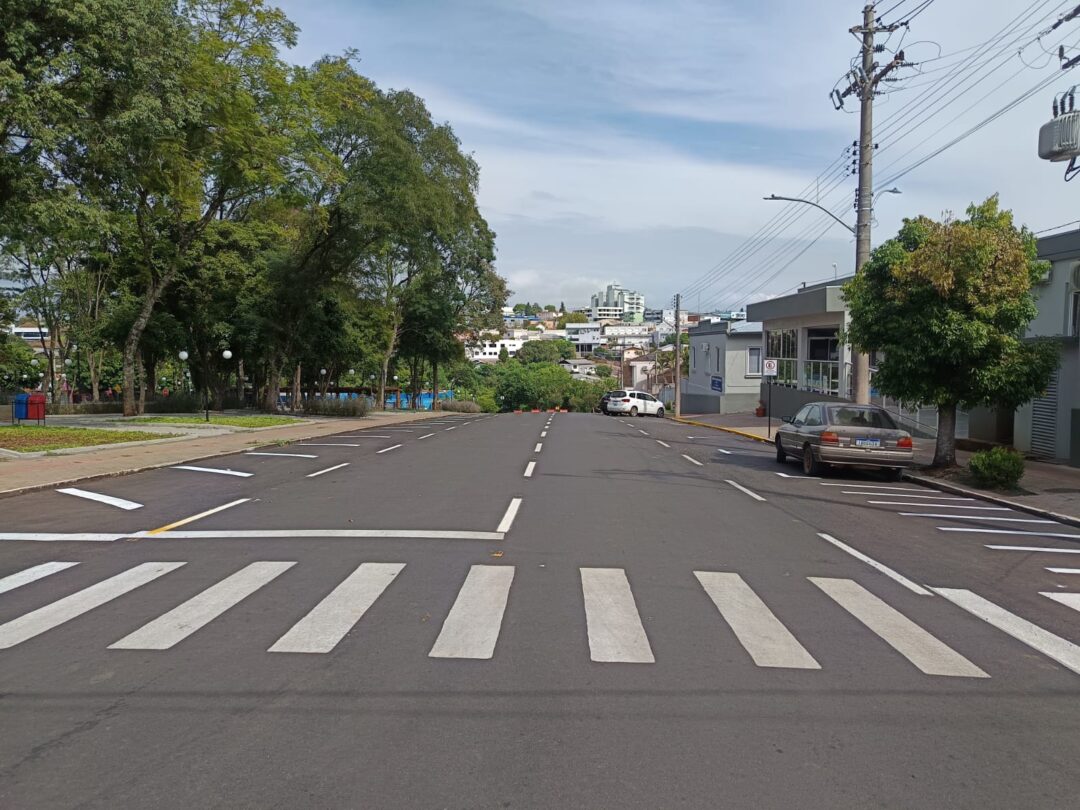Conforme a nova sinalização, o fluxo de veículos neste trecho passa a ser no sentido bairro–centro, com estacionamento permitido em ambos os lados da via, no formato oblíquo.