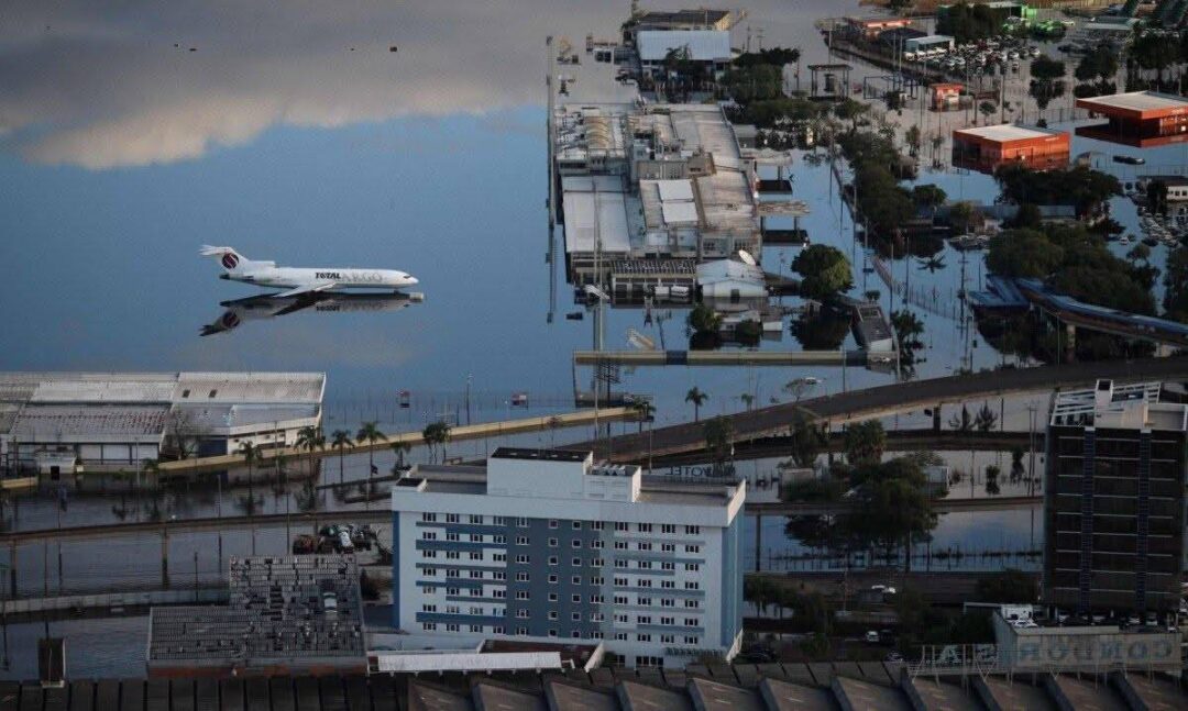 Aviões comerciais que estavam no pátio do aeroporto Salgado Filho, em Porto Alegre, foram retirados a tempo para evitar a inundação do início de maio de 2024, menos o 727 que ficou no meio do aguaceiro -a água chegou a cobrir os trens de pouso e ficar junto às asas, como se a aeronave estivesse boiando.