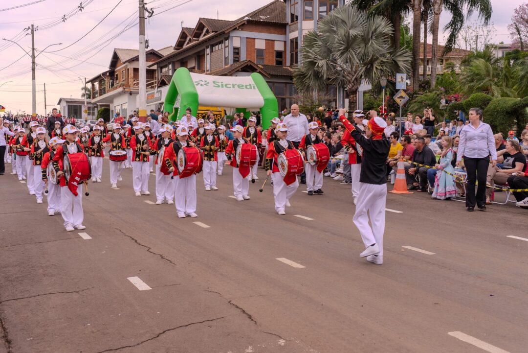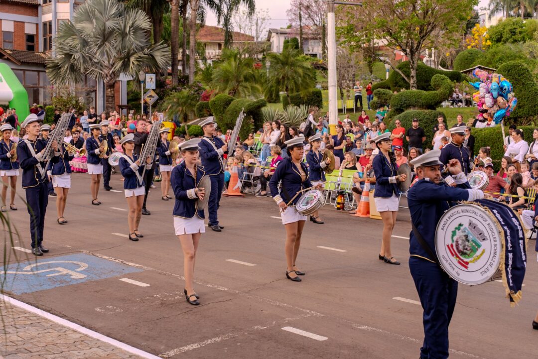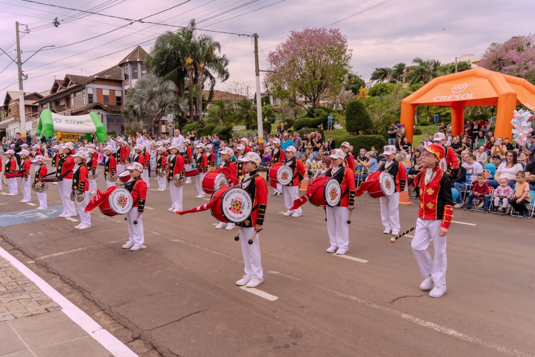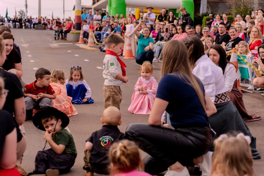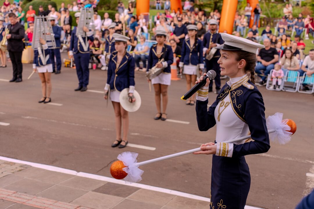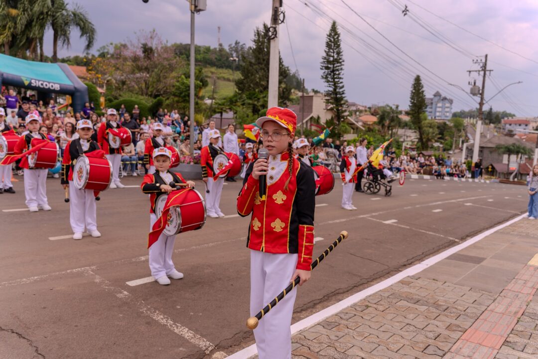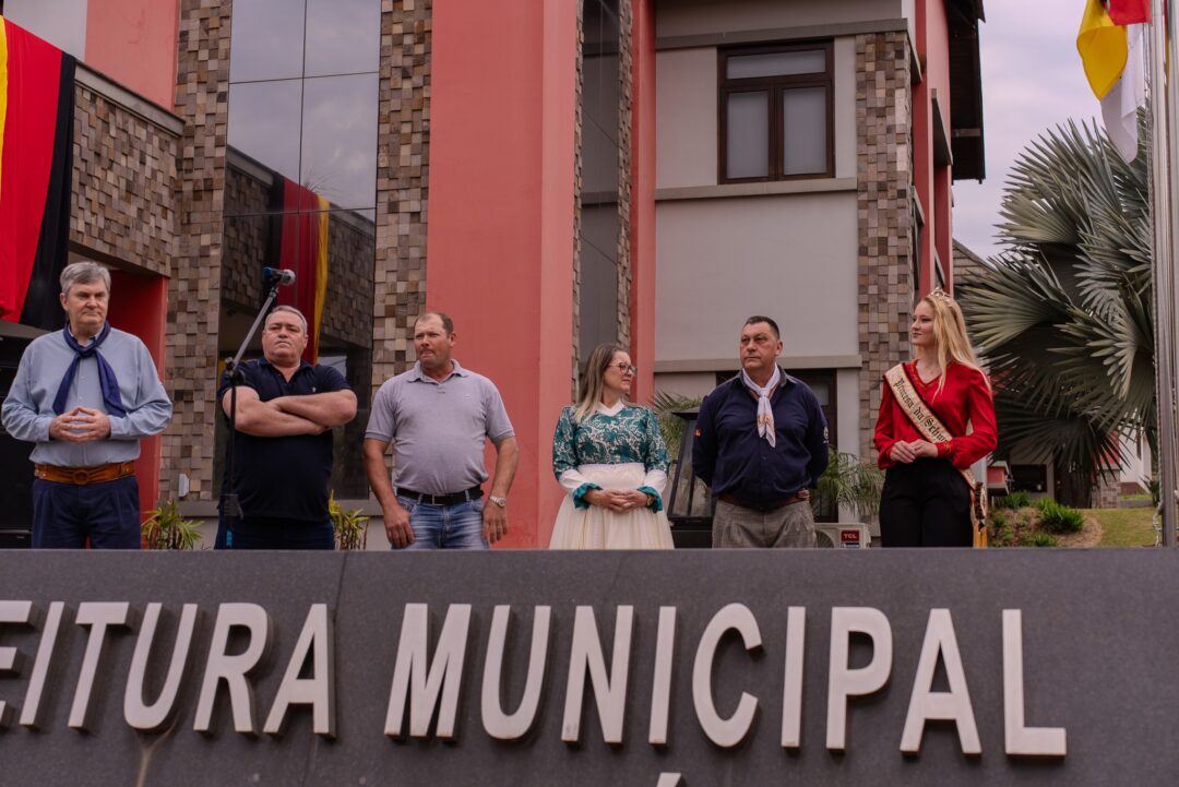 O prefeito Ari Edmundo Roehrs discursou sobre a importância das datas, destacando que, enquanto o 7 de setembro marca a independência, o 20 de setembro simboliza a luta por mais autonomia financeira, uma causa ainda atual.