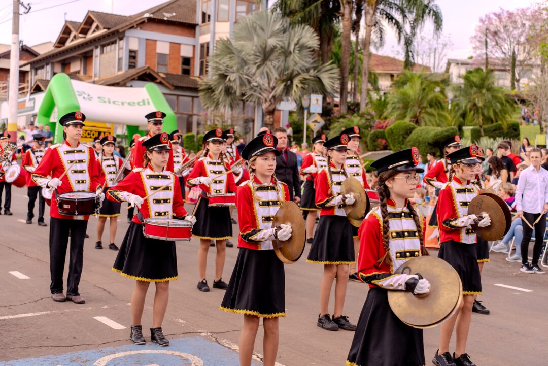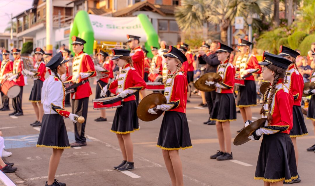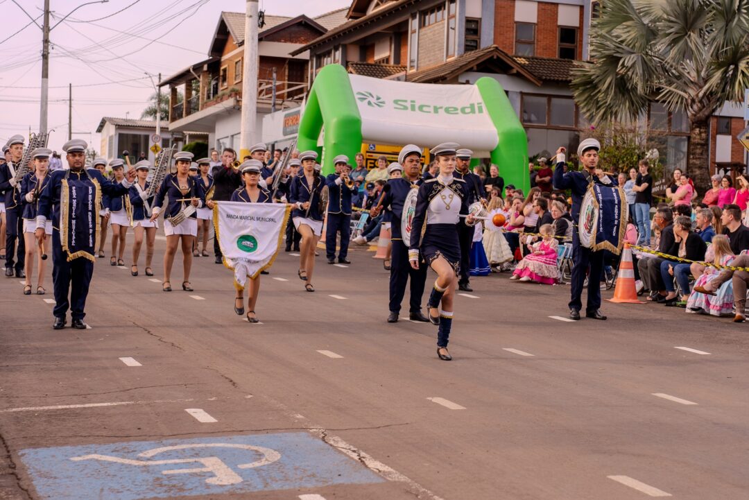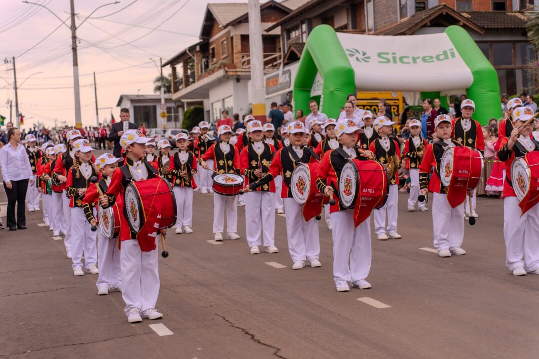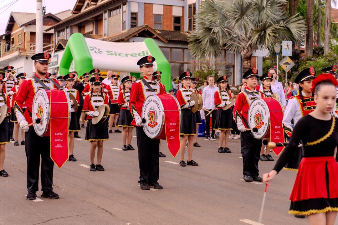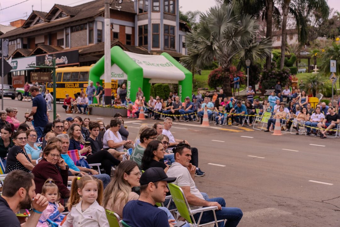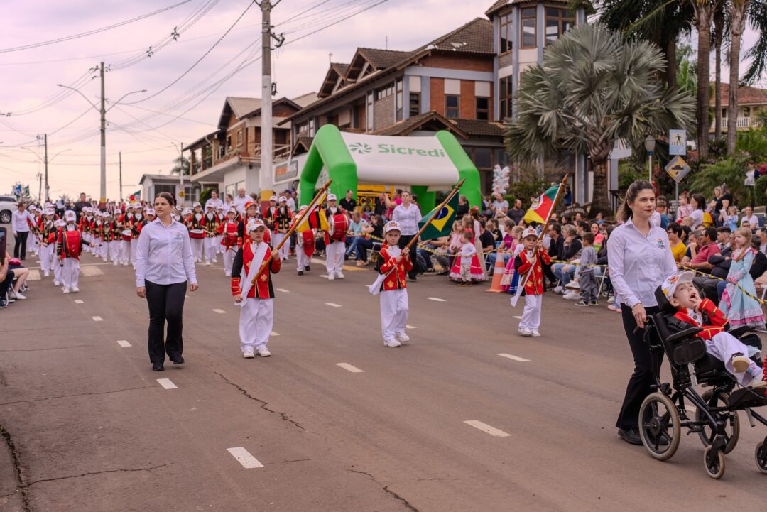 O prefeito Ari Edmundo Roehrs discursou sobre a importância das datas, destacando que, enquanto o 7 de setembro marca a independência, o 20 de setembro simboliza a luta por mais autonomia financeira, uma causa ainda atual.