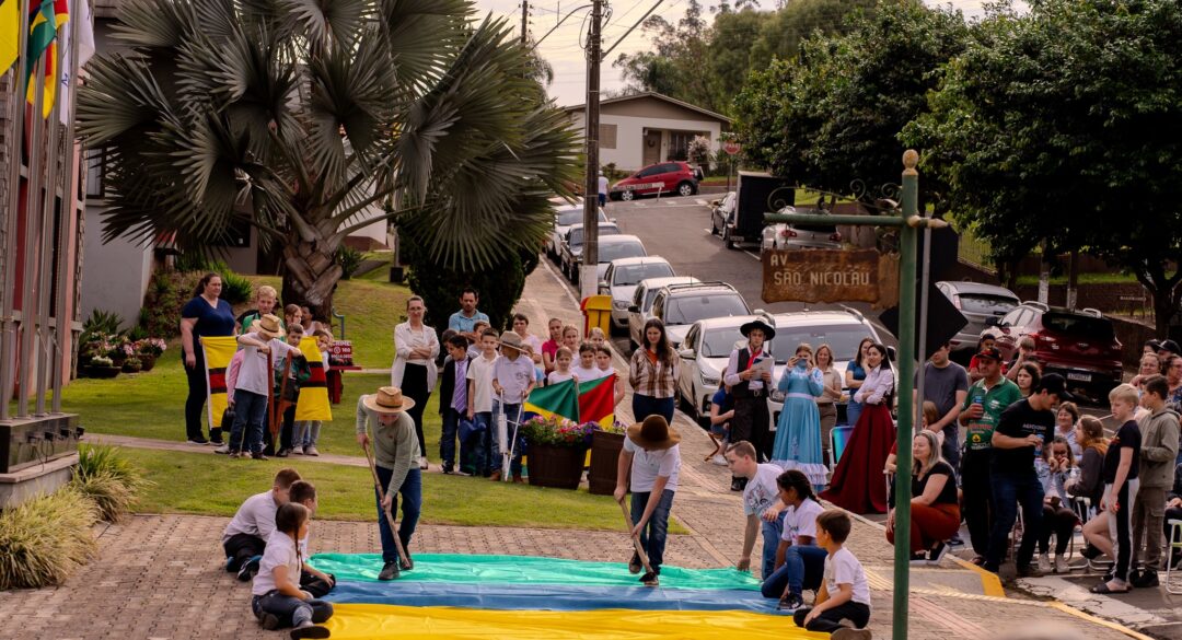 A cidade de Nova Candelária realizou no último sábado (20) um evento cívico-tradicionalista para celebrar a Independência do Brasil e a Semana Farroupilha. A solenidade, que reuniu autoridades, estudantes e a comunidade, aconteceu em frente à Prefeitura Municipal.