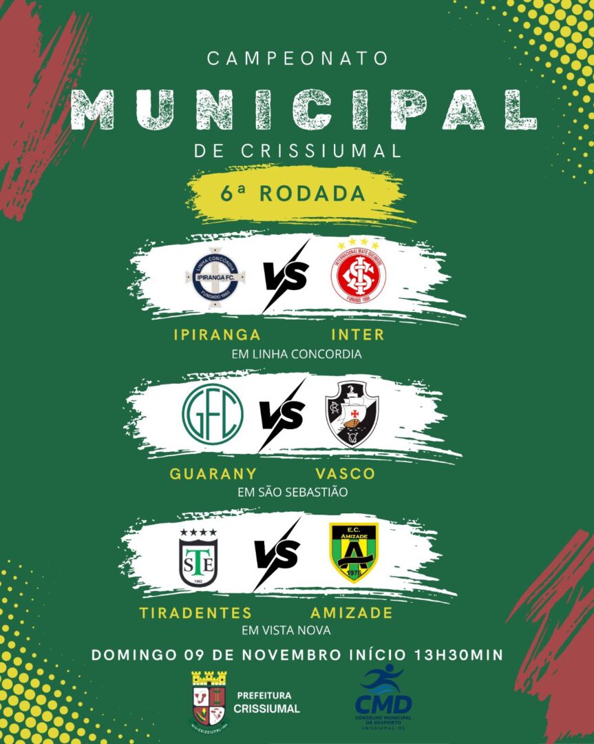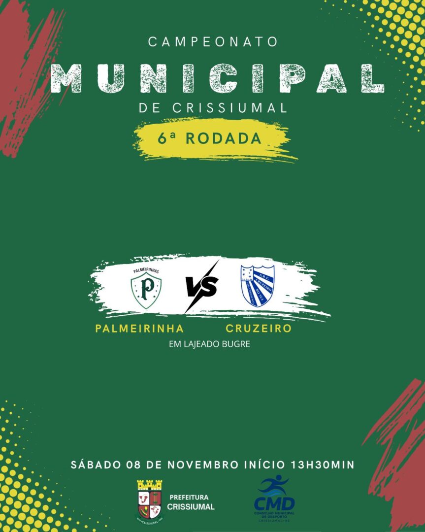 A Administração Municipal, por meio do Departamento de Esportes, divulgou nesta quarta-feira (05) as datas e locais dos jogos válidos pela 6ª rodada do Campeonato Municipal de Crissiumal 2025.