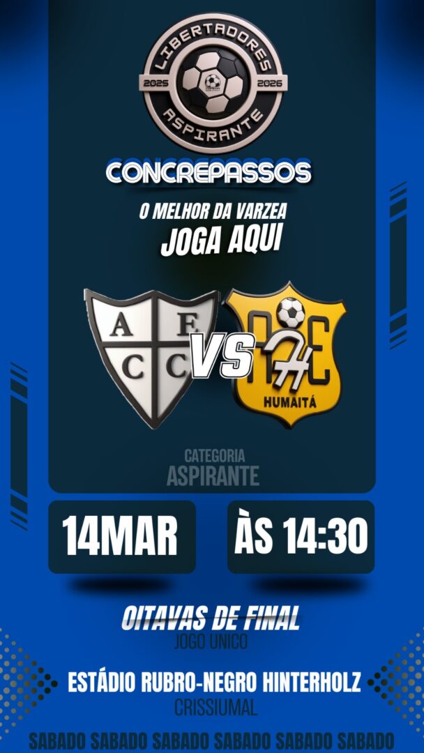 O município de Crissiumal recebe neste sábado dois jogos válidos pelas oitavas de final da Copa Libertadores Regional Concrepassos, competição que entra agora na fase eliminatória. Os confrontos da categoria aspirante serão decididos em jogo único, e em caso de empate a vaga será definida nas cobranças de pênaltis.