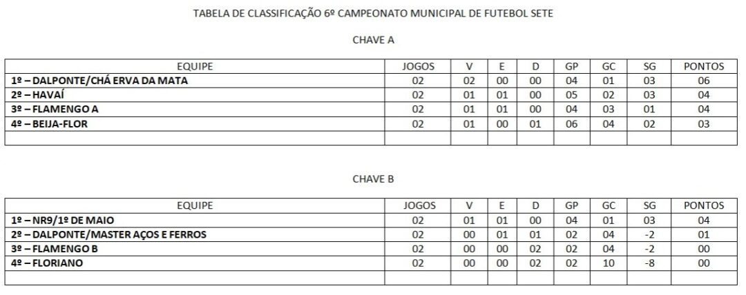 Com esses resultados, a tabela de classificação apresenta equilíbrio nas duas chaves da competição. Confira como ficou a pontuação após duas rodadas: