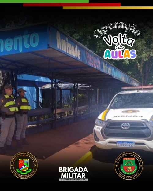 Nesta quarta-feira (18/02), a Brigada Militar, através dos Policiais Militares do 7° BPM, nos 21 municípios de atuação, realizaram o lançamento da Operação Volta às Aulas, que se estende até o dia 18 de dezembro de 2026.