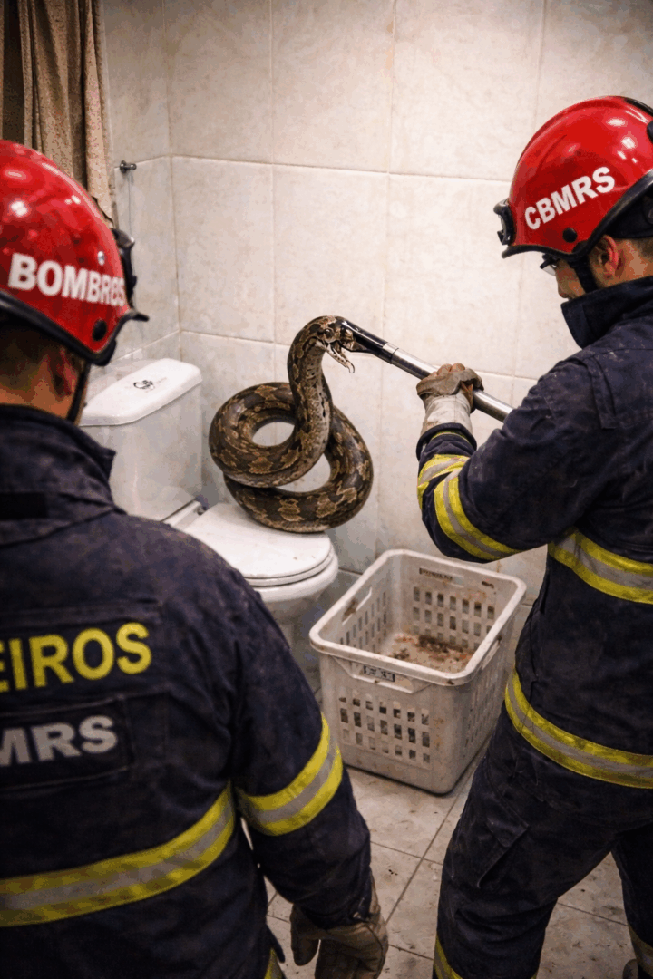 Ao chegar ao local, os bombeiros constataram que o animal estava no banheiro da casa, apresentando comportamento agressivo, o que exigiu cuidados especiais durante a operação.