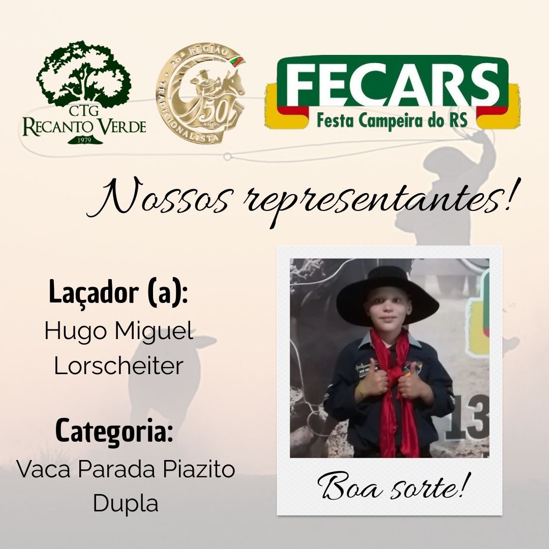 • Hugo Miguel Lorscheiter: Representa a nova geração no Laço Vaca Parada Piazito Dupla, mostrando que a tradição começa cedo.