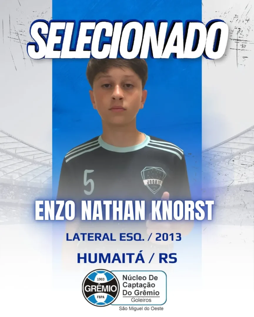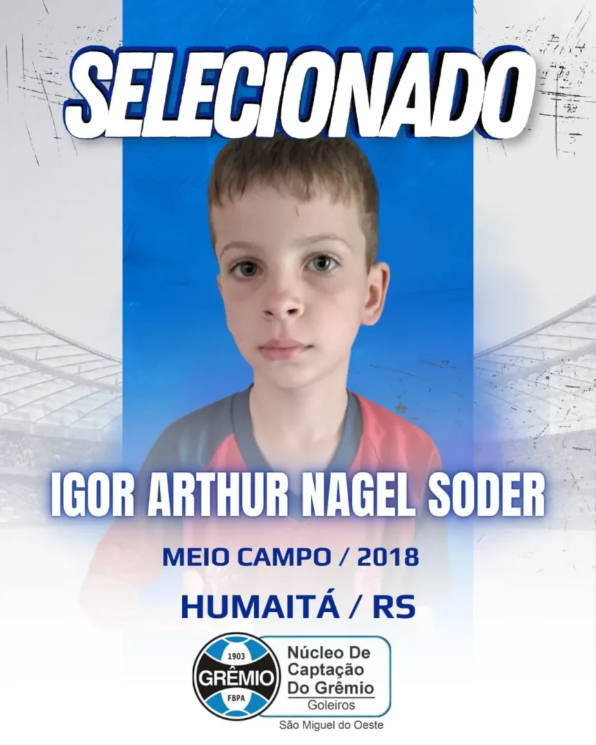 O Núcleo de Captação do Grêmio Foot-Ball Porto Alegrense, de São Miguel do Oeste (SC), divulgou a lista dos atletas selecionados na primeira avaliação realizada fora do estado, no município de Humaitá (RS).
