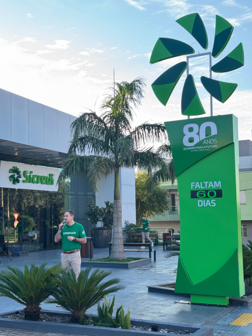 O totem de contagem regressiva simboliza o início de uma série de ações comemorativas que irão marcar o ano de celebrações, criando conexão com a comunidade e valorizando a essência cooperativa que acompanha a Sicredi Confiança desde 1946.