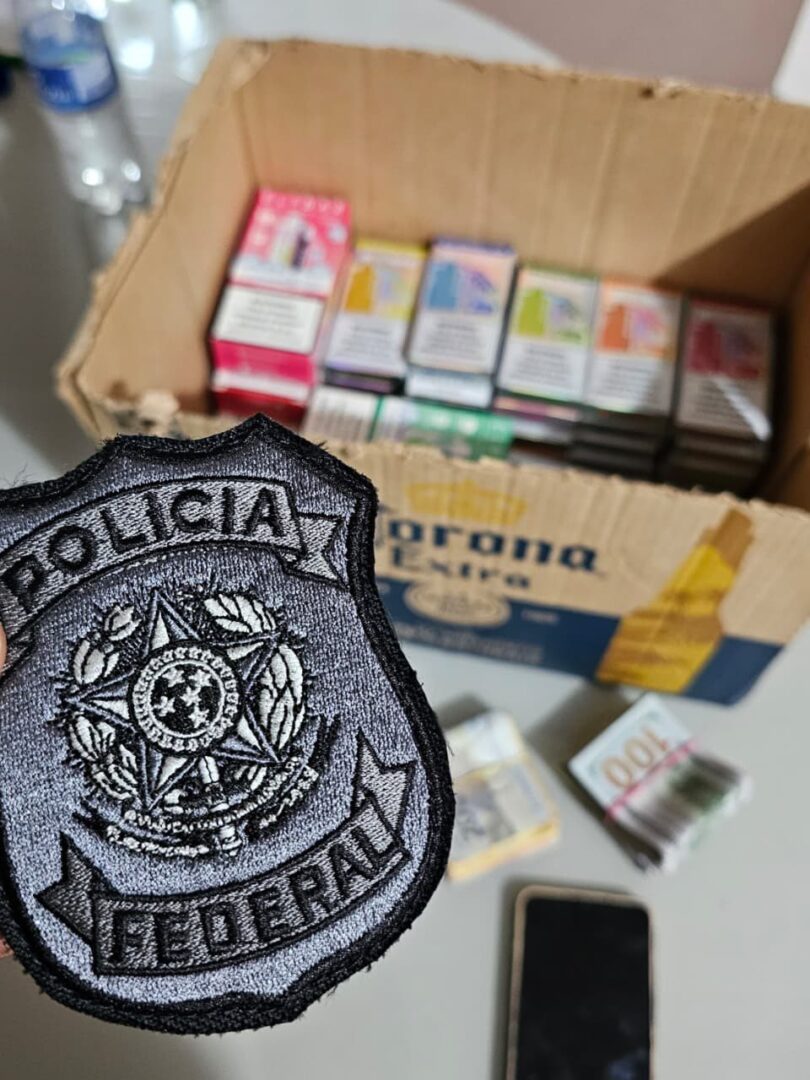 Na ação de hoje foram cumpridos quatro mandados de busca e apreensão domiciliar, sendo apreendidos um celular, cerca de 10 mil dólares americanos e 3 mil reais. Também foi realizada a prisão em flagrante de um homem, de 42 anos, pela posse de 46 unidades de cigarros eletrônicos. Ele foi conduzido à Delegacia de Polícia Federal em Santo Ângelo e responderá pelo crime de contrabando.