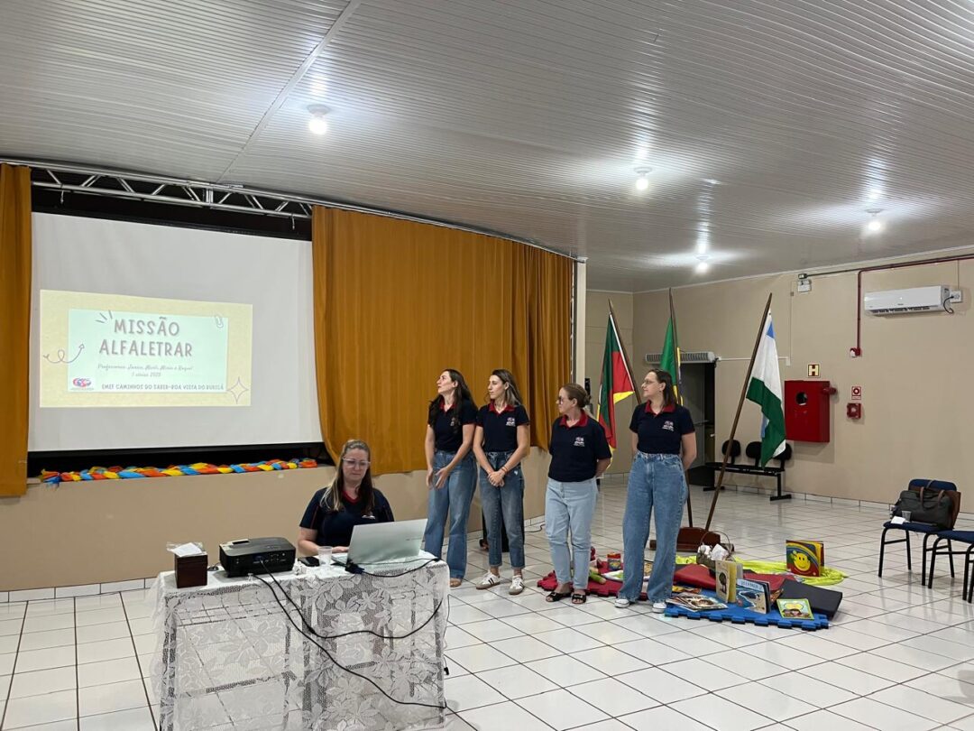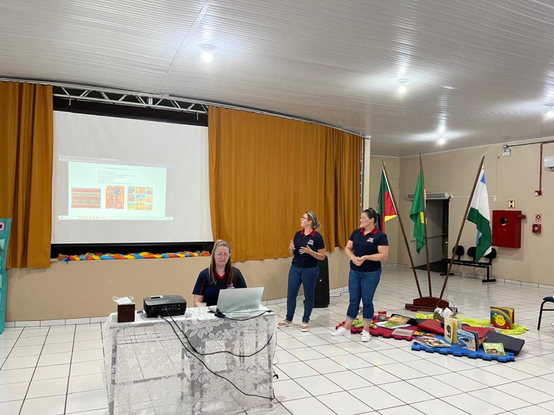 A atividade contou com a participação da Articuladora Municipal do CNCA e Formadora do Programa Alfabetiza Tchê, Liziane Jaqueline Paz Simon Gross, cuja atuação tem sido fundamental na orientação das ações formativas. Estiveram presentes também o Secretário Municipal de Educação, Scharles Tiago Schons, a Coordenadora Municipal do Programa Alfabetiza Tchê,Deise Gracieli Tresel e a Presidente do Conselho Municipal de Educação, Suzane Aparecida Bulla, fortalecendo o caráter colaborativo e integrador da gestão educacional no território.