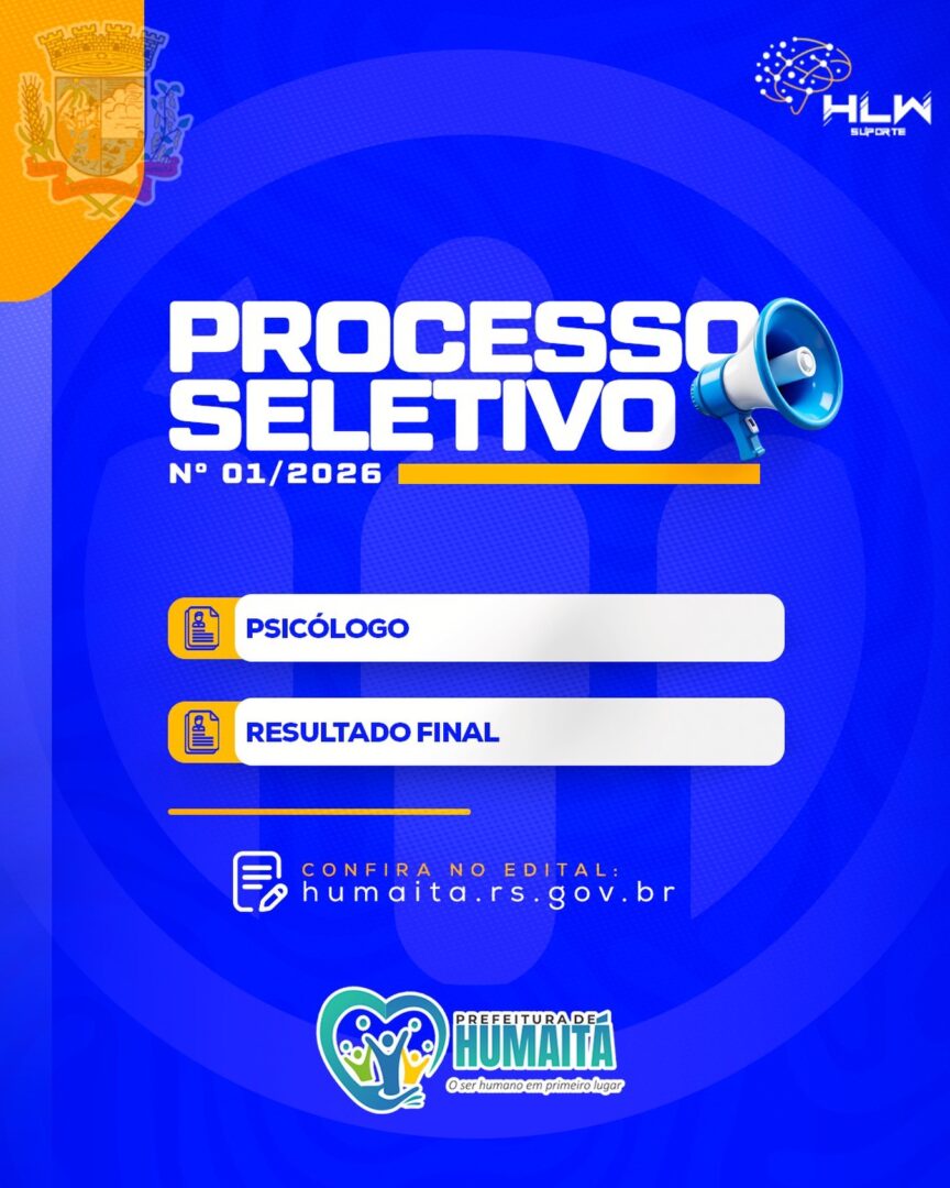 A Administração Municipal de Humaitá torna público o resultado final do Processo Seletivo Simplificado para contratação por prazo determinado para o cargo de Psicólogo, conforme Edital nº 008/2026.
