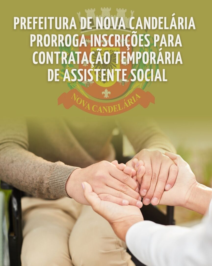 A Prefeitura Municipal de Nova Candelária informa que foram prorrogadas até o dia 30 de outubro de 2025 as inscrições para o Processo Seletivo Simplificado nº 012/2025, que visa à contratação temporária de profissionais para o cargo de Assistente Social.