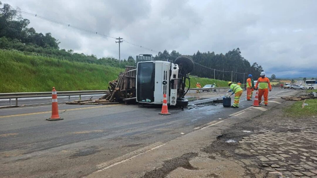 A carga de madeira e o óleo derramado bloquearam a rodovia no sentido Interior–Capital, provocando congestionamento de aproximadamente 4 km. Equipes da CCR Via Sul, Samu, Corpo de Bombeiros e Polícia Rodoviária Federal atuaram no atendimento.