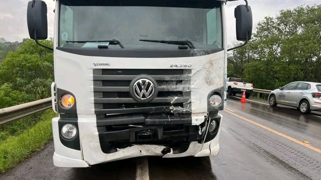 O motorista do caminhão baú não sofreu ferimentos. A Polícia Rodoviária Federal atende a ocorrência.