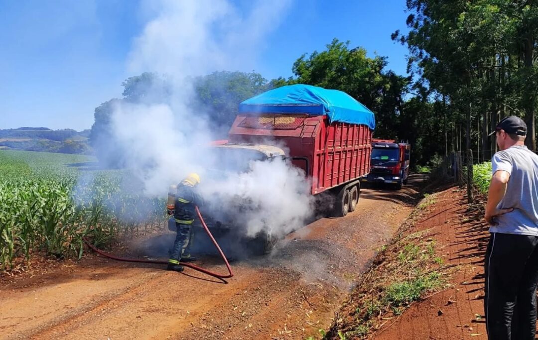Um incêndio atingiu a cabine de um caminhão no início da manhã desta quarta-feira, 22, por volta das 10h, na Linha Navegantes, interior de Pinhalzinho. O veículo transportava uma carga de maravalha e, ao chegar ao local, os bombeiros encontraram a cabine completamente tomada pelas chamas.