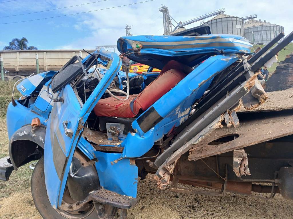 O acidente aconteceu nas proximidades de uma empresa de grãos e mobilizou o Corpo de Bombeiros Militar. Quando a equipe chegou ao local, encontrou o Mercedes-Benz 1113, carregado com soja, completamente destruído.