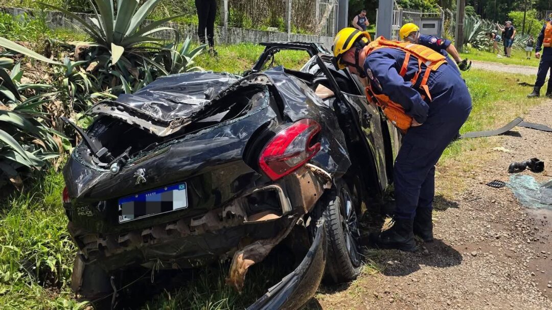 Com o impacto, a condutora foi ejetada para fora do automóvel, sofrendo múltiplas fraturas e ferimentos graves. O carro teve os airbags frontais e laterais acionados e ficou completamente destruído, evidenciando a violência da colisão.